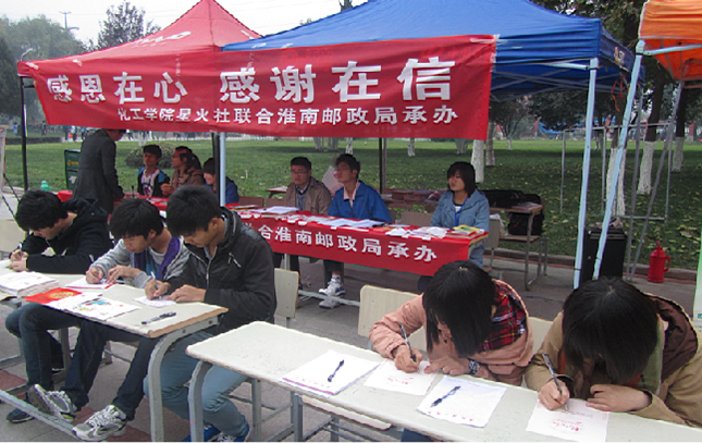 有一种温情叫关怀,有一种美好叫奉献,有一种幸福叫感恩。为了给同学们一个表达心中浓浓感恩之情的平台,11月23日,化学工程学院于北区喷泉广场举办“感恩在心,感谢在信”感恩节系列活动。本次活动由化学工程学院与淮南市邮政局主办,化学工程学院承办,淮南日报和今晚800的记者全程报道。