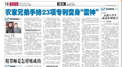 《中国青年报》报道成人漫画 “专利兄弟”创新发明的先进事迹