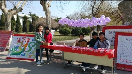 3月15日上午,为了让大学生更深入地了解新修订的《消费者权益保护法》,化学工程学院在北区爱情湖畔举办消费者权益日法制宣传活动。