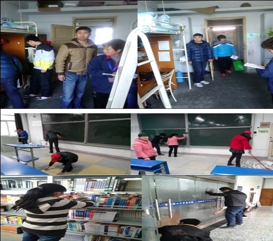 教学楼里,志愿者们放弃午休时间,自带打扫工具到各个教室擦黑板、整理讲台、扫地拖地,每个人都像对待自己的家一样,清理每一处可见的脏污。辛勤的劳动换来的是一间间整洁、明亮的教室。