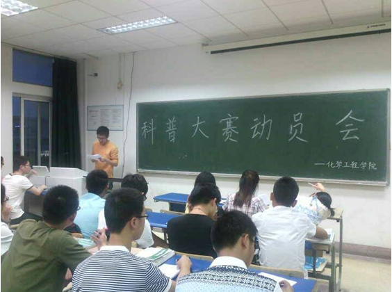 5月15晚,为响应安徽省第五届“双百” 科普创意创新大赛,化学工程学院在北区1602教室召开动员大会。学院团委书记曹秀军老师、高圣涛老师、2012和2013级同学代表参加此次动员会。