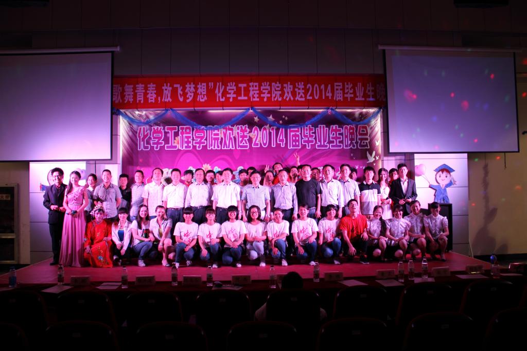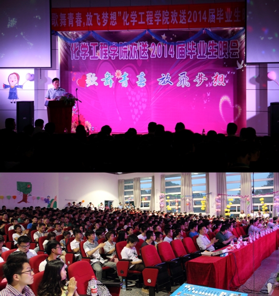 凤凰花开季,同窗道别时,在仲夏五月,化学工程学院“歌舞青春,放飞梦想”欢送2014届毕业生晚会在北区图书馆报告厅隆重举行。校学生副处长黄晟、校团委副书记赵宁、学院关工委副主任汪大立、学院党政领导及师生500余人共同观看了精彩纷呈的文艺晚会。