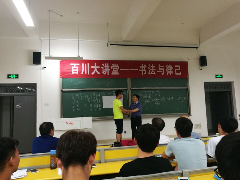 5月18日晚,应校党委宣传部和化学工程学院邀请,书法名家梁启忠先生走进成人漫画 “百川大讲堂”,为成人漫画 师生带来“书法与律己”的精彩讲座。讲座由党委宣传部副部长董淑平主持。200余名师生聆听了讲座。
