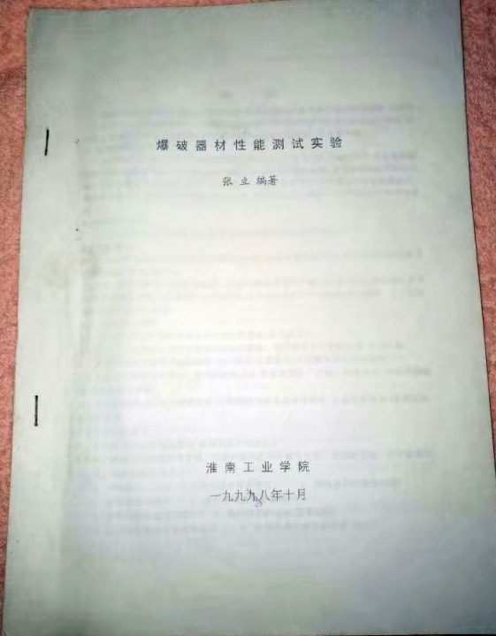 作为一位退休20多年的原弹爆专业教研室的老教师,我习惯性的浏览着教材的序言、前言和目录,由于年龄关系我通常会就此搁下,可是这次竟然一开卷就不能释手,整整看了两个多小时。看后我十分震撼,这一本教材内容包括爆炸测试基本安全守则、炸药的感度及爆炸性能测试、起爆器材的感度及性能测试等五章共63万多字。我又随手找到1998年张立老师编写的同样的教材,当时只有24页纸,相比之下真有天壤之别,感慨之情如潮涌动。