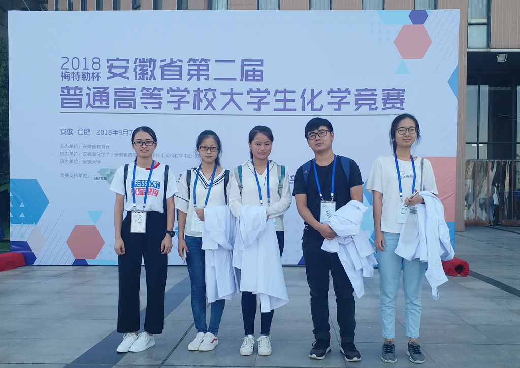 由安徽省教育厅主办,安徽大学承办,安徽省化学会和安徽省高等学校化学化工实验教学中心联席会协办的2018“梅特勒杯”安徽省第二届普通高等学校大学生化学竞赛决赛在安徽大学磬园校区举行。共有来自中国科学技术大学、合肥工业大学、安徽大学、安徽师范大学等高校组成的31支队伍共153名同学参加本次比赛。成人漫画 通过预赛选拔和暑期训练,由5名同学组成的成人漫画 代表队参加了决赛。经过努力拼搏,成人漫画 学子取得优异成绩。来自化学与工程学院的俞哲佳同学荣获一等奖、张庆洋、蔡乐乐、刘娜同学荣获二等奖。在安徽省化学会年会上举行了化学竞赛的颁奖仪式。