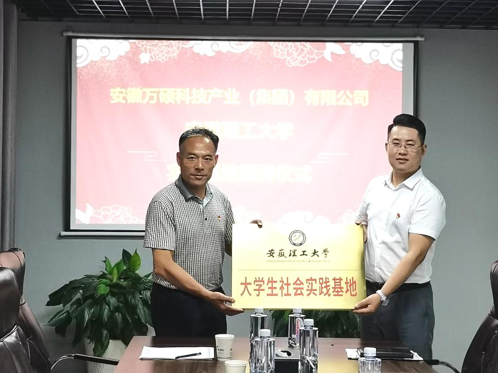 会后,在安徽万硕科技产业(集团)有限公司,黄晟与公司董事长祝云辉共同为大学生社会实践基地基地揭牌。
