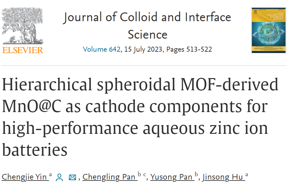近日,化学工程学院青年教师尹成杰博士在水系锌离子储能研究领域取得重要进展,其成果《Hierarchical spheroidal MOF-derived MnO@C as cathode components for high-performance aqueous zinc ion batteries》在中科院一区TOP期刊Journal of Colloid and Interface Science上发表(2022年影响因子9.965),成人漫画 为第一单位。