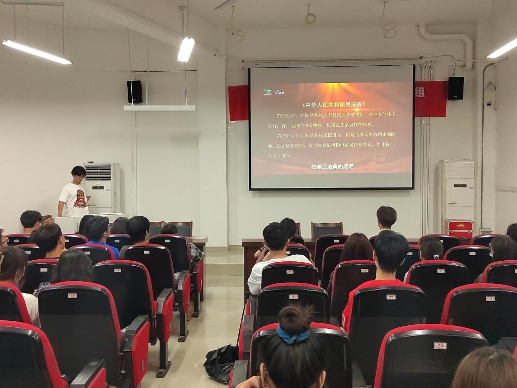 5月18日晚,化工学院在学院东102教室举行“美好生活·民法典相伴”主题宣讲会,学生会综合服务部部长谢许诺主持宣讲会,学院团委书记杨志华参与指导。会议主要由《民法典》简介、播放《民法典》宣传片和具体案例分析三部分组成,同学们积极讨论、踊跃发言,通过案例分析进一步加深大家对《民法典》内容的认识与理解,大家纷纷表示《民法典》对我们的日常生活的行为规范起着重要的作用。本次活动增强了同学们的法律意识和责任感,激发了大家学法、懂法、守法的热情,进一步夯实了法治校园建设工作,为创建平安、和谐、文明校园奠定了坚实的法治基础。