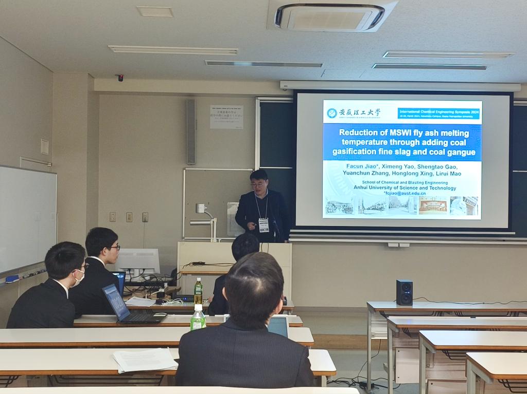 会议期间,邢宏龙教授、毛立睿博士就各自研究领域内容与参会专家进行深入交流,焦发存副教授作了题为《Reduction of MSWl fly ash melting temperature through adding coal gasification fine slag and coal gangue》的学术报告。