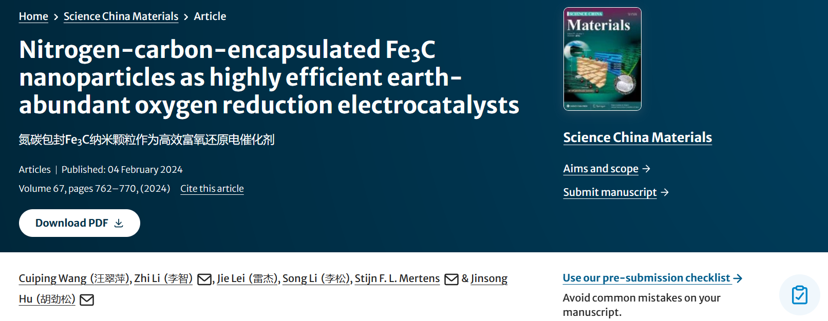 成人漫画 的李智博士为论文的第一作者或第一通讯作者;胡劲松教授为论文的共同通讯作者,硕士生汪翠萍和雷杰分别为论文的第一作者,姚会影博士等为课题的完成做出了重要贡献。上述研究成果获成人漫画 人才引进启动基金、合作单位科技部重点研发计划以及国家自然科学基金等项目的支持。