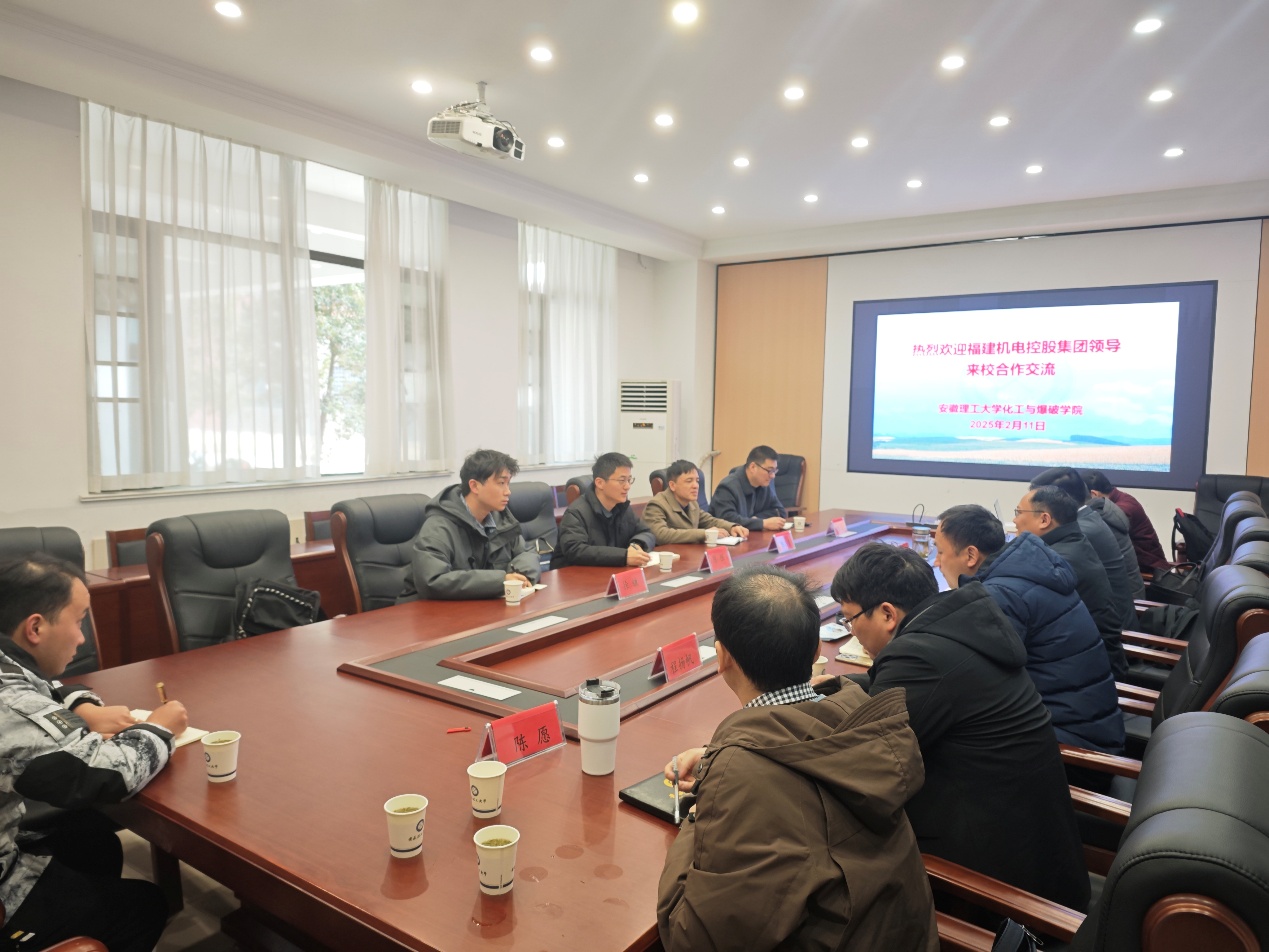 2月11日,福建机电(控股)集团发展规划部副总经理陈恒、技术部经理陈志贵一行来成人漫画 调研并开展合作交流。院长汪泉、院党委副书记(主持工作)刘瑞等领导班子成员以及爆炸科学与工程系部分专业教师参加了交流活动。