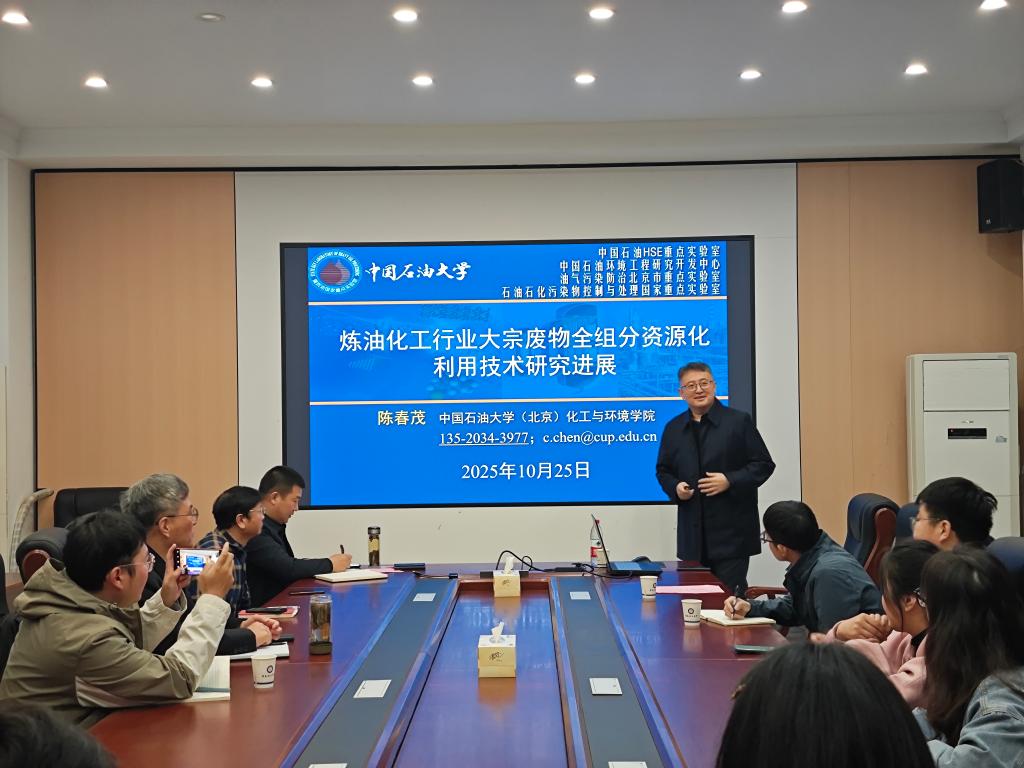 10月25日上午,中国石油大学(北京)陈春茂教授在崇礼楼东103报告厅作了题为《炼油化工行业大宗废物全组分资源化利用技术研究进展》的学术报告,并指导成人漫画 化学工程与技术学科建设。成人漫画 院长汪泉教授主持学术报告会,学院教师及学生80余人参会。