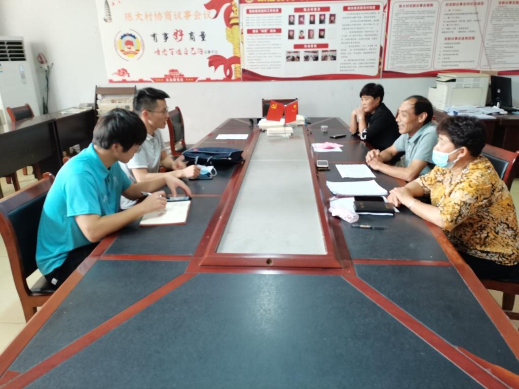 在安徽省蒙城县陈大村,调研团成员有幸采访到了驻村扶贫的鹿书记,鹿书记向我们介绍了陈大村的基本情况并与我们分享了陈大村的脱贫战果,全村108户贫困户共计359人,在全村的共同努力下现已全面脱贫。随后调查团成员旁听了村里每周的例行扶贫会议,了解到陈大村积极利用土地和水力资源大力发展种植业和养殖业,同时通过光伏发电、土地流转、农事委托等方式帮助村民获取额外收入,努力提升村民的幸福感和获得感。
