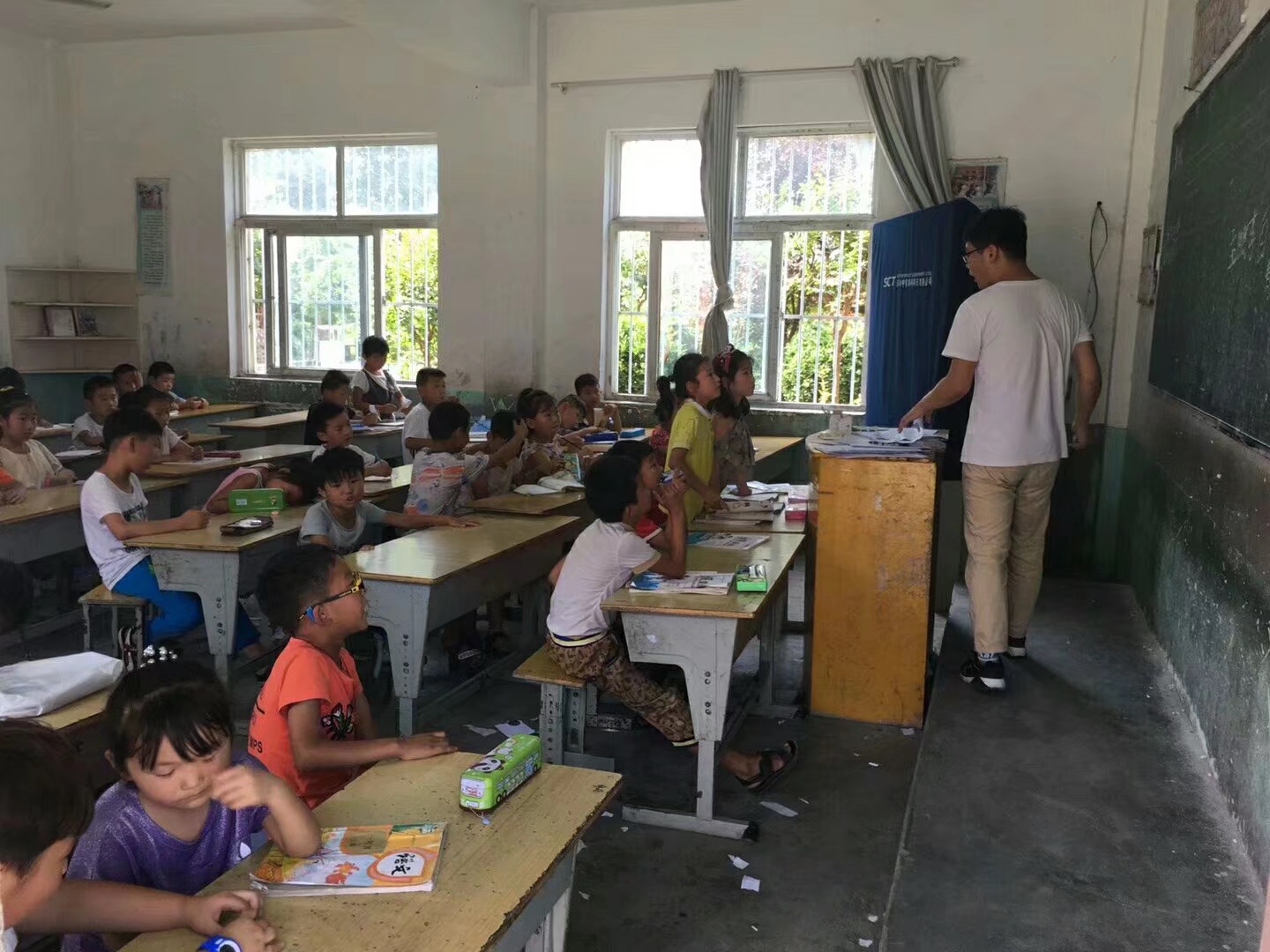 经过组内成员与村委会联系得到了村委会的支持,在与桃山小学校方取得联系后,校方对同学们的到来表示欢迎,并愿意提供教室。经过团支部会议决定,支教活动为期一周,主要为辅导孩子们完成暑假作业。经过村委会与当地老师的联系,支教活动便正式开始。村委会工作人员为同学们安排了食宿地点。7月20日晚,团支部在会议讨论后制定了作息时间表。7月21日授课正式开始,同学们着手布置教室,孩子们也纷纷拿起扫把打扫起来。按照作息时间表的安排,团支部成员在课堂中帮助孩子们解答问题,在课间就与孩子们一起玩耍。活泼可爱的孩子们让这个校园在暑期也充满了欢声笑语。
