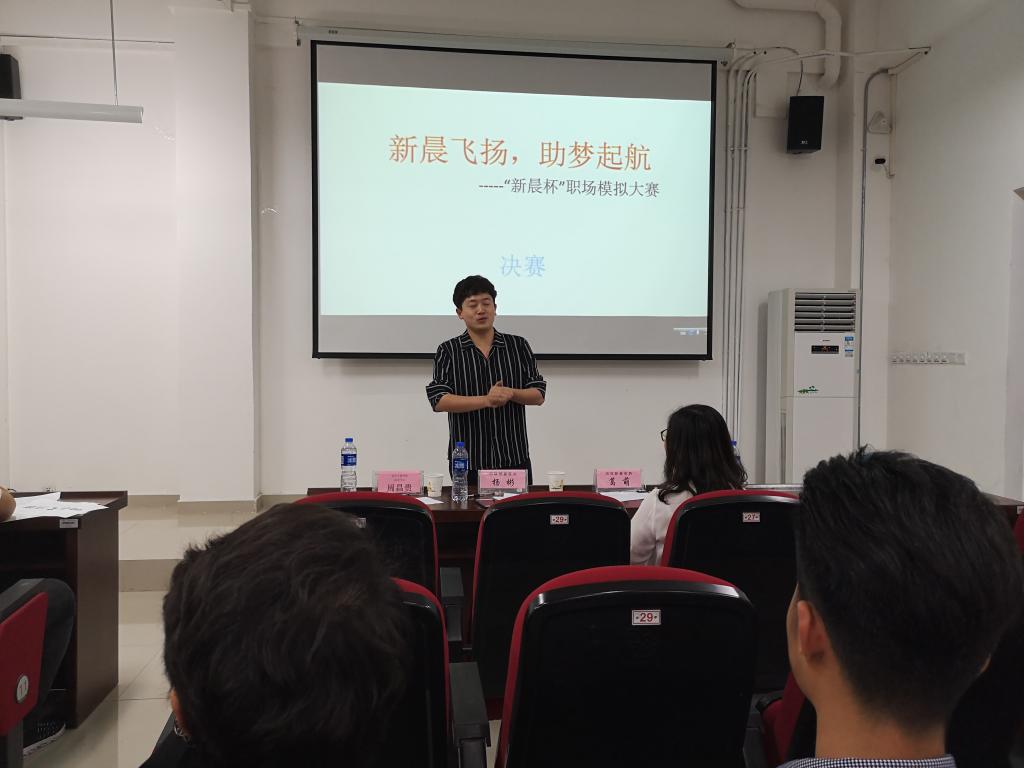 5月22日,化工学院与江苏恒瑞新晨医药有限公司在化工楼102教室联合举办“新晨杯”职场模拟大赛。江苏恒瑞新晨医药有限公司总经理杨彬等作为评委嘉宾出席本次比赛。学院110余名同学参加比赛。
