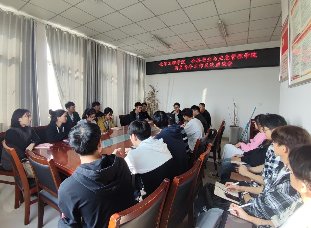 11月5日,为增强学生组织工作开展的规范性,加强不同学院之间的交流合作,成人漫画 化学工程学院与公共安全与应急管理学院在化工学院“一站式”学生社区召开青年工作座谈会。化学工程学院团委书记杨志华、公共安全与应急管理学院团委书记许晓鹏、两学院学生组织成员代表共20余人参加座谈会。