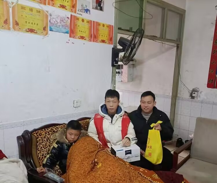 钟宇轩同学跟随志愿队伍前往湖南省岳阳市汨罗市白塘镇给留守儿童送去了爱心牛奶以及御寒的衣物,让孩子们在寒冷的冬天同样能感受到大人在身边的温暖。