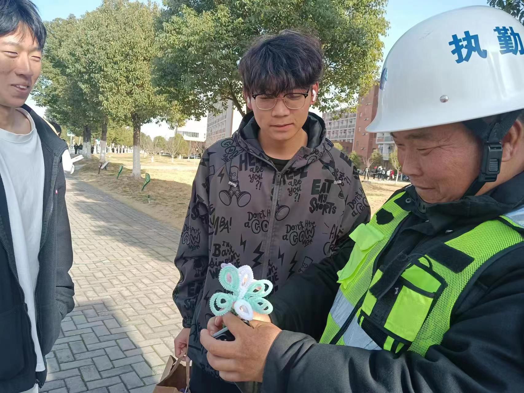 3月19日,志愿者们亲手制做手工花,送给默默奉献、任劳任怨的工作人员,感恩他们的辛勤付出。看到收到“小红花”的工作人员展开了笑颜,送花地同学们也非常开心。这次活动激励同学们在今后的生活中向他们学习,并发扬雷锋精神,做一个无私奉献的人。