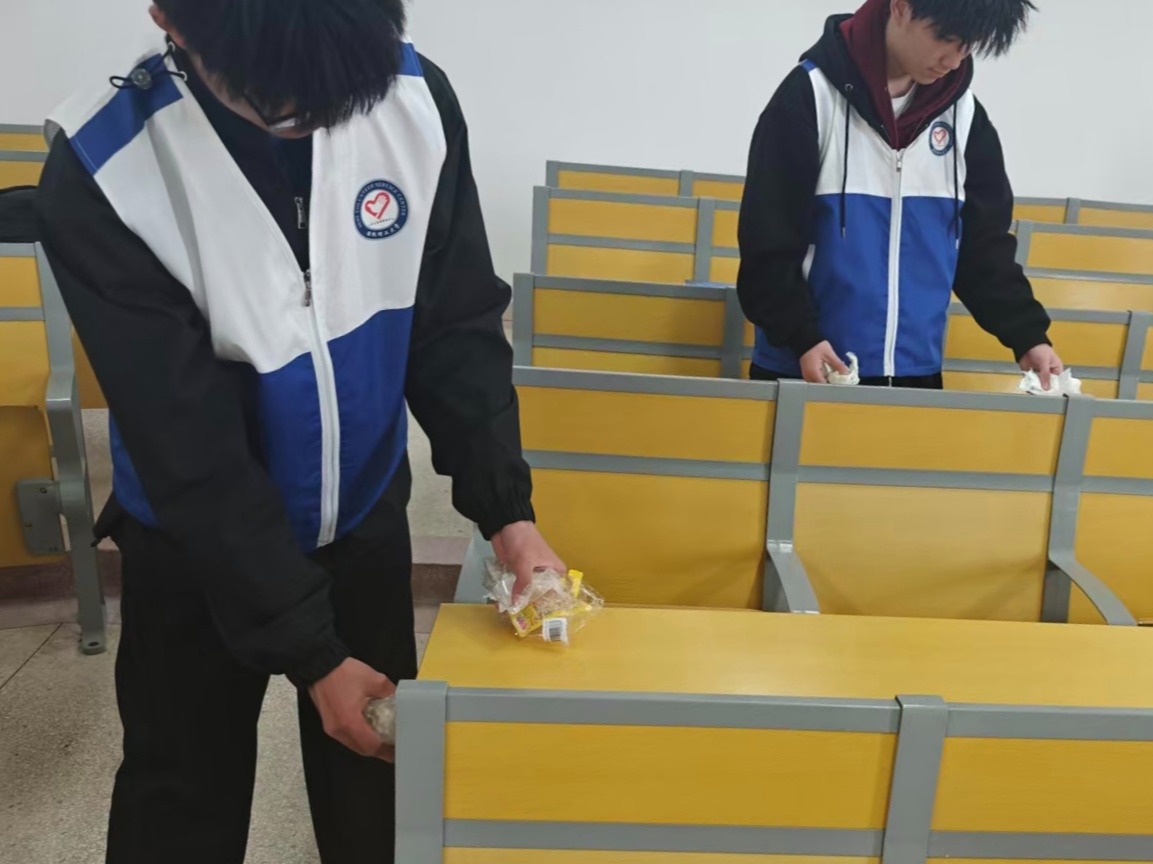 活动当天课后,志愿者们纷纷行动起来。大家分工明确,有的手持扫帚清扫地面纸屑、灰尘,有的用抹布仔细擦拭黑板、讲台,还有的负责将垃圾进行分类收集。同学们不怕脏、不怕累,不放过任何一个卫生死角。在大家的共同努力下,原本残留着垃圾的教室变得窗明几净,桌椅摆放整齐,学习环境焕然一新。参与此次活动的 应化24 - 2班张同学表示:“教室是我们每天学习的地方,保持干净整洁是我们共同的责任。通过这次清理活动,不仅让教室变美了,也增强了我们爱护环境的意识。”