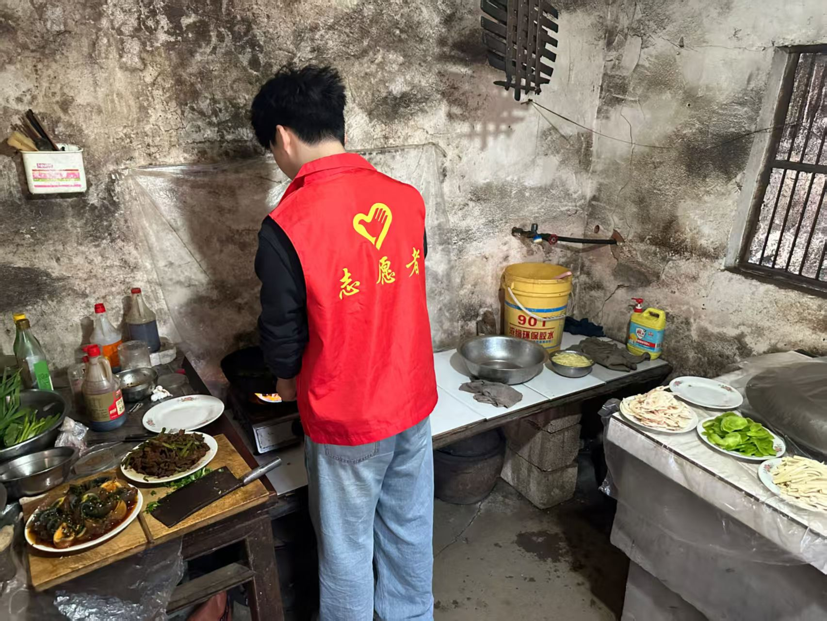 3月22日,10余名身着红马甲的志愿者分组走进黄老圩村、蔡家圩村。 一勺一铲传递关怀,一擦一扫尽显温情。青年志愿者们通过上门打扫、烹饪爱心餐等实际行动,让老人们感受“家门口”的幸福。志愿者们与老人围坐谈心,倾听他们的生活故事,此外,他们还为困难老人送上了精心准备的“爱心礼包”,包含一些米面粮油等生活物资,并逐一记录老人的需求,建立长期帮扶档案。