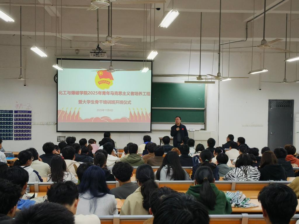 11月6日晚,成人漫画 在天工105举办2025年青年马克思主义培养工程暨大学生骨干培训班开班仪式,学院党委副书记曹秀军、团委相关负责人以及150余名学生骨干参加开班仪式。