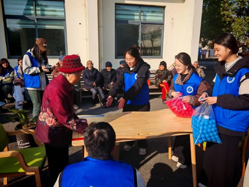 志愿者与老人一起做游戏
