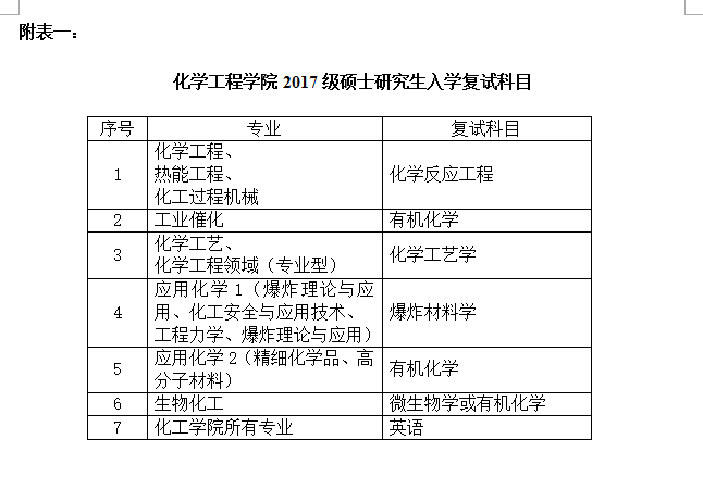 二、化学工程学院2017级硕士研究生入学复试工作安排